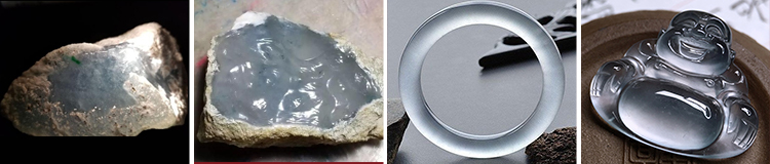 純淨度很高,隱晶的聚合體,緻密而堅實,拋光呈玻璃面 ,顆粒直徑小於0.01毫米,無色且透明,主要礦物為成分單一的硬玉。水頭足,起瑩,按字面理解就是透明得如同玻璃一樣。
